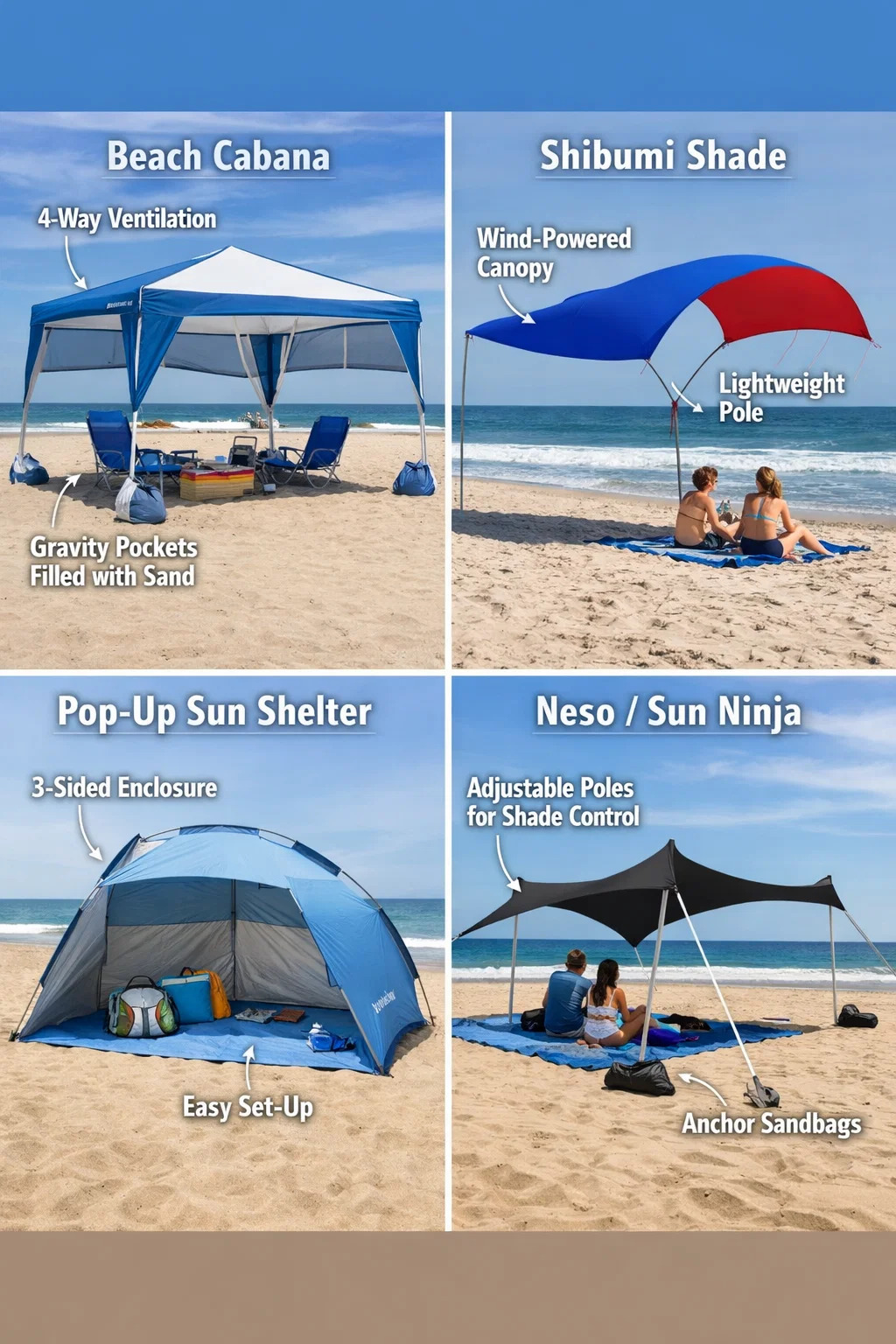 Why it's better: These products are usually enclosed on three sides, like a half-tent. For those with children or pets, it blocks wind, sand, and UV rays from the sides, providing more comprehensive sun protection.