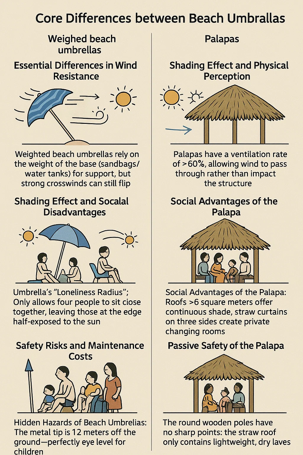 The following is an analysis of the core differences between beach umbrellas and palapas: